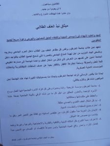 دعا القائمون علي مبادرة طلاب جامعة الخرطوم لنبذ العنف، جميع وسائل الإعلام المحلية والدولية، وعموم الأسرة الصحفية والإعلامية، لمؤتمر صحفي مهم للموقعين على ميثاق نبذ العنف الطلابي، وذلك يوم الأحد ٢٧ أكتوبر، بمجمع الوسط-نجيلة الآداب، الساعة 2 ظهراً.