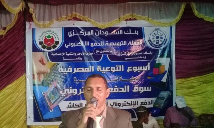من جانبه أوضح رئيس الحملة الترويجية للدفع الإلكتروني د. عبد الباسط محمد المصطفي أن الحملة تهدف لتعزيز الدفع الإلكتروني في جميع المعاملات التجارية ولفت للكتلة النقدية الضخمة خارج المصارف بولاية الجزيرة يمكنها ان تسهم في عودة الولاية لسيرتها الاولي والنهوض بها حال دخولها البنوك بعد عودة ثقة العملاء في القطاع المصرفي .