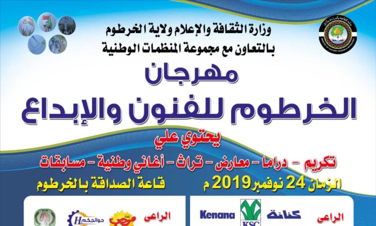 تنطلق يوم الاحد المقبل فعاليات مهرجان الخرطوم للفنون والابداع الذي ياتي شراكة بين وزارة الثقافة والاعلام ولاية الخرطوم ومجموعة المنظمات الوطنية، واشار نائب رئيس اللجنة العليا محمد اسحق عثمان ان هذه النسخة تعتبر اكثر تميزا حيث تجي بعد ان شهدت البلاد تغييرا كبيرا شمل كل المجالات بمافيها الثقافة والابداع لافتآ ان المهرجان الذي تنطلق فعالياته بقاعة الصداقة بالخرطوم صباح الاحد بمعرض يشمل عدد من الشركات ابرزها شركة سكر كنانة التي تعتبر الراعي الماسي للمهرجان كاشفآ ان المعرض ياتي بمشاركة عدد كبير من الشركات، موضحآ ان هناك عيادة مجانية تشارك بها مستشفي الشعب بمصاحبة عدد من الاستشاريين الزائرين للبلاد في مختلف التخصصات اضافة للحفل الرئيسي الذي تحييه فرقة عقد الجلاد وفرق الكوميديا ومشاركة عدد من الدراميبن ولفيف من اهل الفن والثقافة ويتم تكريم عدد من اسر الشهدء والرموز الوطنيين