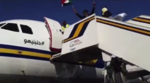 واستقبل العاملين بالمطار وشركة سودانير الطائرة التى قادها الكابتن ابراهيم على ابو سن، بالهتاف والبكاء والزغاريد.