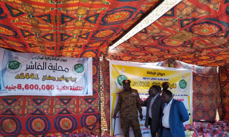 دشن والي ولاية شمال دافور المكلف اللواء ركن مالك الطيب خوجلي اليوم بمدينة الفاشر برنامج شهر رمضان المعظم للعام 1441هجرية والذي تنفذه امانة ديوان الزكاة بالولاية.
