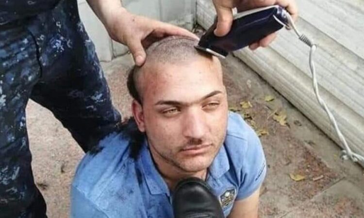 وفي حين لم تعرف صحة تلك الاتهامات، أقدم بعض العناصر على إلقاء القبض على الرجل، وحلق شعره بالكامل وشواربه بطريقة مذلة، كما داسوا على رقبته بالأرجل، بهدف إذلاله وتصويره.