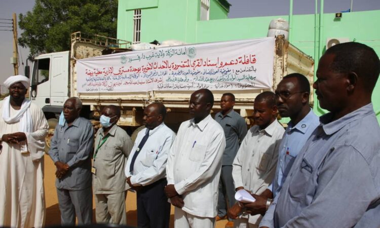 من جانبه ابان الشيخ سليمان عبدالله السماني ـ امين ديوان الزكاة ان القافلة تعتبر امتداد لقافلة محلية جبل مون تم تسييرها من ديوان الزكاة بالتعاون مع شركاء الزكاة بتكلفة بلغت مليون جنيها للمتضررين من النازحين جراء احداث الجنينة في قرى تِرتِر وخير واجد وسرف نيرتتي في وحدة مستري بمحلية بيضة واشار الى ان القافلة تشمل مواد متنوعة من الغذاء والايواء والادوية والاسعافات الاولية وحيا السماني وقفة دافعي الزكاة مع خطط وبرامج الديوان للقيام بدوره في المسئولية الاجتماعية والاهتمام بالشرائح الضعيفة في الولاية كما اشاد بالجهد المبذول من العاملين في مجال العمل الزكوي لتحقيق الربط من الجباية في ظروف استثنائية وقلة الامكانيات مثمناً دور الاعلام في نشر الوعي المجتمعي عن الزكاة في الولاية