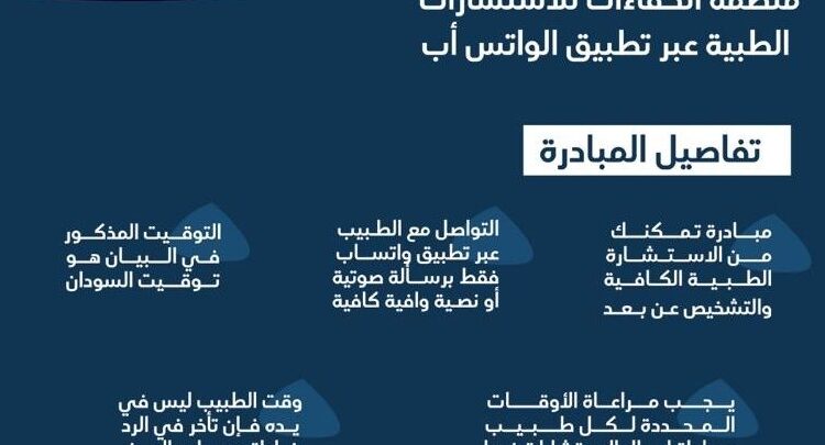 وقال المسؤول: (المبادرة هدفها تمكين المرضى من التواصل مع كوكبة من علماء بلادنا الأطباء الأفاضل أصحاب الخبرات المميزة ممن يعملون داخل السودان أو خارجه، والذين أبدوا – رغم كثرة أعمالهم – موافقتهم باقتطاع جزء من وقتهم الثمين للإجابة على استفسارات المرضى وتوجيههم في استشاراتهم تطوّعاً واحتساباً للأجر من عند الله تعالى وتعاوناً على البر والتقوى، وذلك عبر تطبيق (واتس أب) مع مراعاة التنبيهات التالية:
