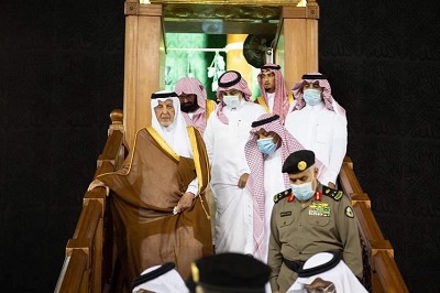 الفيصل يغسل الكعبة بماء زمزم ممزوجاً بماء الورد