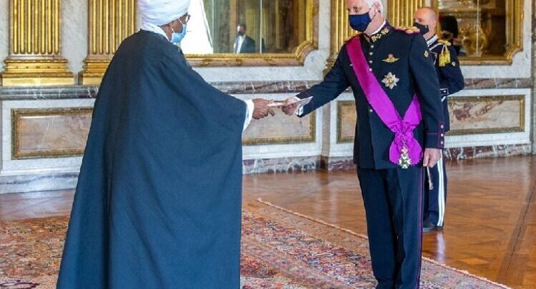 قدم سعادة السفير عبد الرحيم احمد خليل ابالقصر الملكي ببروكسل أوراق اعتماده للملك فيليب ليوبولد ملك بلجيكا سفيراً فوق العادة ومفوضاً لجمهورية السودان لدى مملكة بلجيكا.