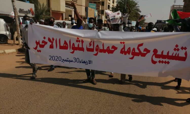 وتظاهر المئات من المواطنين، منددين بالأوضاع الاقتصادية في البلاد، مطالبين بإقالة وزير الصناعة والتجارة مدني عباس مدني. وحملوا لافتات (تشييع حكومة حمدوك لمثواها الأخير)، و هتفوا (سلمية.. سلمية)، (الثورة لسه مستمرة).