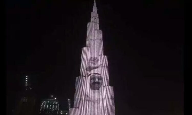 أضاء برج خليفة بدولة الإمارات العربية المتحدة، بصورة لأمير الكويت الراحل الشيخ صباح الأحمد الصباح الذي وارى جثمانه الثرى بمقبرة الصليبيخات اليوم، وسط حالة من الحزن خيمت على الوطن العربي.