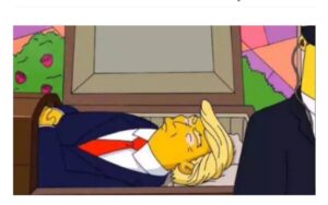 وتصدرت صور السخرية ولقطات من مسلسل الكرتون “آل سيمبسونز ” يظهر خلالها الرئيس الأمريكي وهو جثه هامدة داخل نعش، السوشيال ميديا تحت تساؤل ( هل ستتحقق تنبوءات آل سيمبسونز)