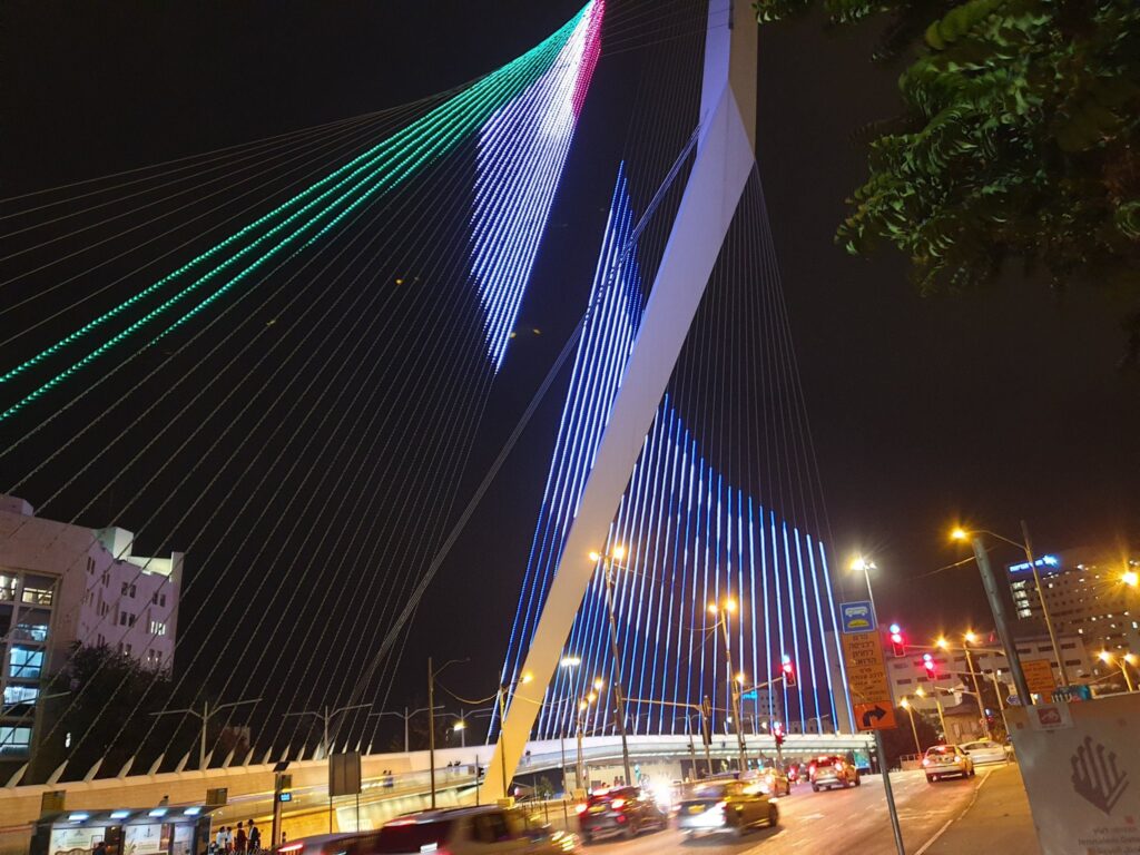 بالصورة: إنارة “جسر الأوتار” في مدخل القدس بألوان العلمين السوداني و الإسرائيلي ابتهاجاً بالتطبيع