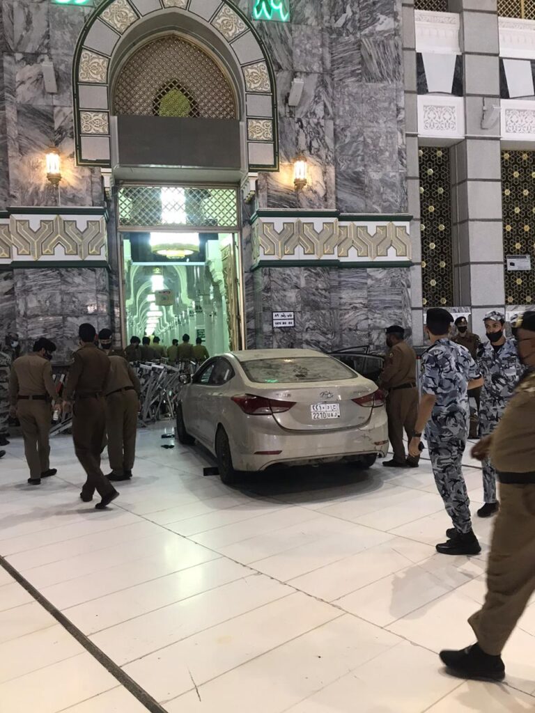 الجهات الأمنية السعودية تباشر حادثة ارتطام سيارة في أحد أبواب المسجد الحرام