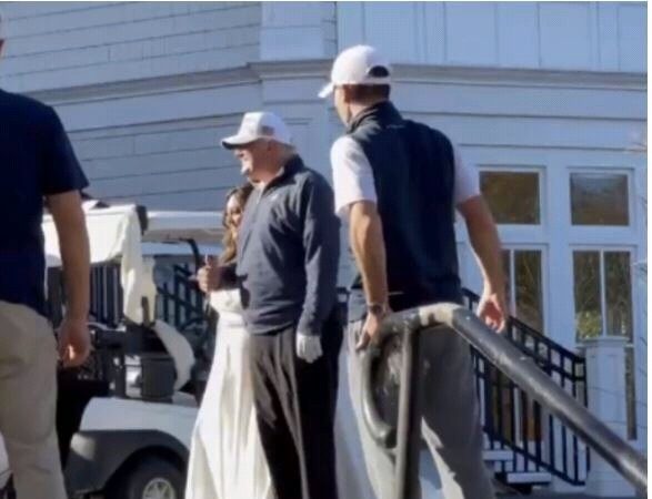 أظهرت صورة حديثة متداولة على مواقع التواصل الاجتماعي، الرئيس الجمهوري المنتهية ولايته دونالد ترامب، وهو يلتقط صورة مع عروس كانت في نادي الجولف.