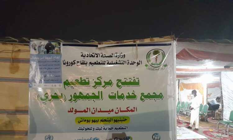 سجلت وكيلة وزارة الصحة الإتحادية د. يسرى محمد عثمان زيارة تفقدية لمركز التطعيم بلقاحات كوفيد-19 بمجمع خدمات الجمهور بالخرطوم بحري ونصبت خيمة التطعيم داخل ميدان المولد لاستهداف مجمع الجمهور وكرين السيارات للفترة الصباحية فضلاً عن استهداف زوار ساحة المولد ليلاً حتى الساعة العاشرة .
