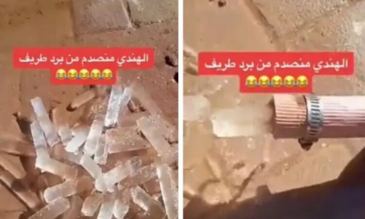 وظهر في الفيديو الذي وثقه أحد المقيمين الماء تجمد أثناء خروجه من خرطوم المياه على شكل قطع ثلجية، حيث استعرض المقيم شكل القطع الثلجية، وذلك بالتزامن مع انخفاض درجات الحرارة بطريف.
