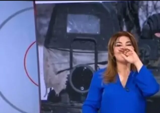 وأظهر مقطع فيديو متداول على مواقع التواصل الاجتماعي “العطار” وهي تقرأ خبر زيارة “بايدن” إلى بولندا، قبل أن تدخل في نوبة ضحك هستيرية.