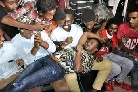 تداولت مواقع التواصل الاجتماعي صورا للفنان صلاح ولي لتي تم التقاطها ثناء قيامه بقفزاته المعروفة اثناء الغناء .