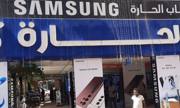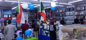 وفي السوق الافرنجي لاحظ محرر المجرة تدافع الزبائن إلى محل كبير لبيع الهواتف النقالة ومستلزماتها. وكان التدافع الكبير لسببين الأول شهرة المحل والثاني هو هذا الاحتفاء الاستثنائي من أصحاب المحل بعيد الاستقلال برفع الزينة واعلام السودان