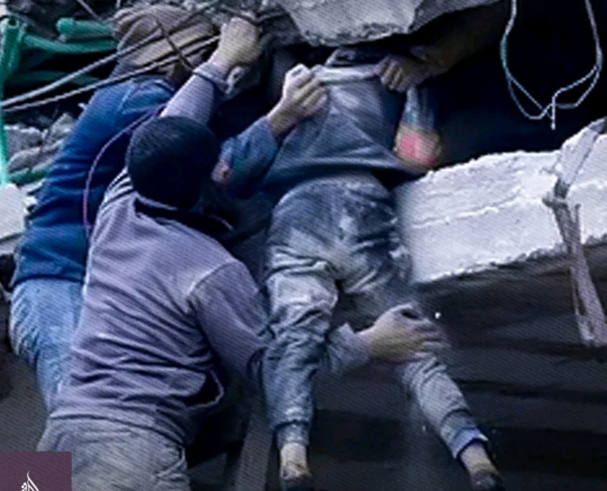 شاهد بالفيديو .. انهيار مجمع سكني كامل وعشرات الأسر يصرخون تحت الانقاض