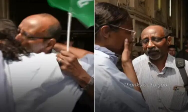 وعلى الفور اتجهت المراسلة إلى خالها محسن، وهو جراح سوداني يحمل الجنسية الأمريكية، واحتضنته، ثم دار بينهما حوار سريع ومؤثر باللهجة السودانية.