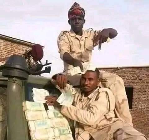 يستعرض أفراد مليشيا حميدتي ما قاموا بنهبه من اموال الشعب السوداني