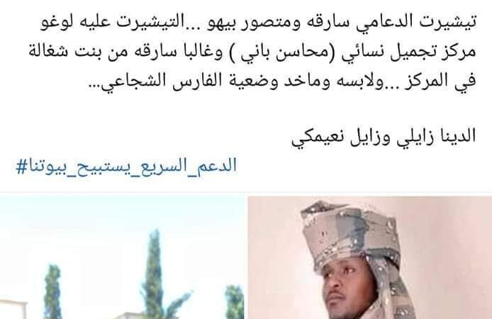 ارتدى احد افراد مليشيا حميدتي المتمردة تي شيرت نسائيا وقام بتصوير نفسه دون أن يلاحظ أن التي شيرت مطبوع عليه اسم مركز تجميل (محاسن بانى)