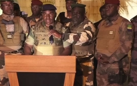 أعلنت مجموعة تضم نحو 12 من عناصر الجيش والشرطة في الغابون الأربعاء في بيان تُلِيَ عبر محطة غابون 24 التليفزيونية من مقر الرئاسة إلغاء نتائج الانتخابات وحل “كل مؤسسات الجمهورية” و”إنهاء النظام القائم”.