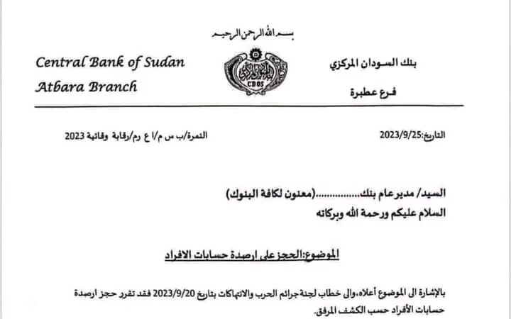 وشمل قرار تجميد حسابات أفراد من مليشيا الجنجويد يوسف عزت وسفيان بريمه ومصعب الضي بشارة واحمد الضي بشارة وابراهيم بقال وعلي دخرو وخالد عجوبه وبرشم وادريس مدلل واخرين !