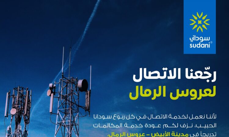 أعلنت شركة سودتل المشغل الرئيسي لخدمات شركة سوداني للهاتف السيار، عن عودة خدمات الاتصال بمدينة الابيض حاضرة ولاية شمال كردفان، وبحسب ادارة سوداني في بيان صحفي ”
