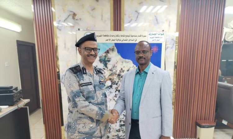 إلتقي السيد / اللواء صلاح احمد إبراهيم مدير عام قوات الجمارك المكلف بمكتبه صباح اليوم بوفد من إتحاد الإعلاميين الأفارقة ضم كل من الدكتور عبد الله بلال نائب رئيس الإتحاد و د .مأمون علي فرح مقرر لجنة تحضير ملتقي الاتحاد الثاني عشر المزمع عقده الأسبوع القادم بالقاهرة وذلك بحضور العميد (حقوقي ) ضياء الدين عبد الرحمن مدير دائرة الإعلام والعلاقات العامة والعميد د.مجاهد الفادني