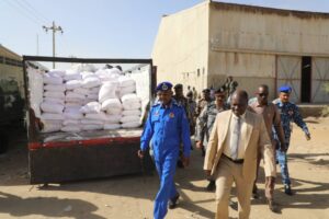 دشن اللواء شرطة(م) خليل باشا سايرين وزير الداخلية المكلف اليوم دعم الوزارة للمجهود الحربى للقوات المساندة بعدد(3,840) جوال دقيق بحضور الفريق اول شرطة(حقوقى) خالد حسان محى الدين المدير العام لقوات الشرطة ومدراء قوات السجون والحياة البرية والدفاع المدنى والجمارك