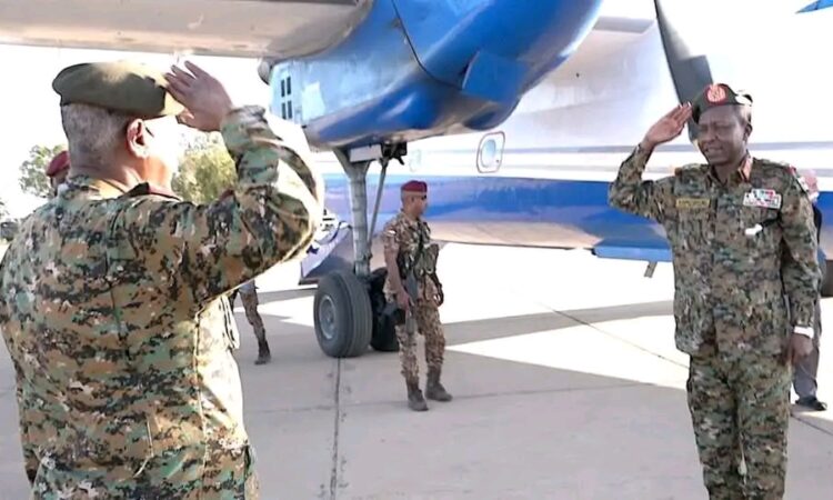 وكان في استقباله بقاعدة الشهيد مختار الجوية، عضو مجلس السيادة مساعد القائد العام الفريق أول ركن ياسر العطا وعدد من قادة الفرق والوحدات العسكرية.