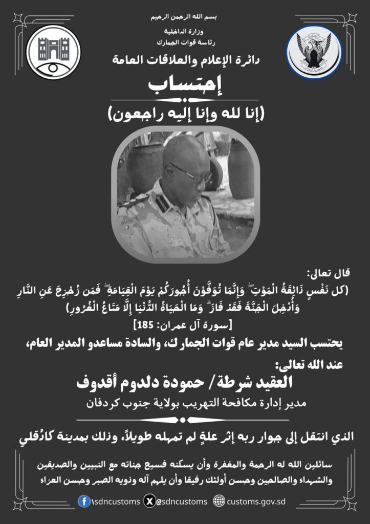 قوات الجمارك السودانية تحتسب مدير إدارة مكافحة التهريب بجنوب كردفان