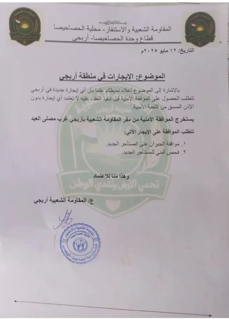 اعلان مهم من المقاومة الشعبية بمنطقة اربجي ولاية الجزيرة