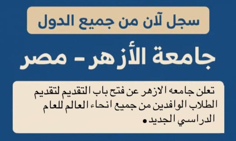 Homeالاخبارعاجل….. بدء التقديم لجامعة الازهر الشريف يوليو. 15, 2025 at 4:12 مالاخبارمميزعاجل….. بدء التقديم لجامعة الازهر الشريف5 أشهر ago15 يوليو، 2025no commentNo tags114views0shares بدأت جامعة الازهر الشريف استقبال طلبات التقديم للدراسة للطلاب الوافدينالتقديم عبر الرابط من هنا ليصلك كل جديد انضم لقروب الواتس آب share on Facebookshare on TwitterLeave a Response إلغاء الردCommentNameEmailWebsiteSave my name, email, and website in this browser for the next time I comment.يرجى إدخال الإجابة بالأرقام: 3 × خمسة = Δ