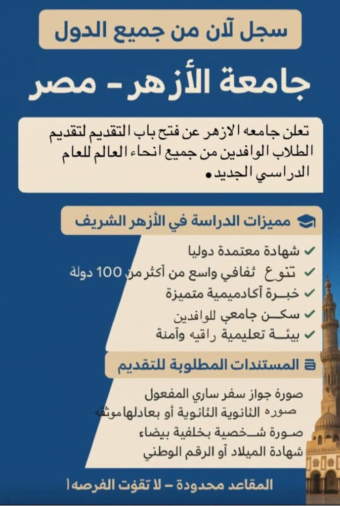 عاجل….. بدء التقديم لجامعة الازهر الشريف