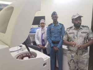 ، فايقنت اني أمام مدير وصل إلى ما يتمناه اي مستشار علاقات عامة ،وكدت الملم اوراقي واغادر…..فقد اطمأننت على هذا المجمع العملاق ،ومدير المجمع العقيد سعاد إنسانة غنية عن التعريف بمختلف شروح هذه الكلمة بدءا بروح التميز والتفاني مرورا بالنجاحات التي شهدها المجمع في عهدها ما جعل جميع قادة الجمارك يبذلون جهودا كبيرة في رفد المجمع بالمعينات فقد أنشأ مدير عام الجمارك السابق سعادة الفريق حسب الكريم ادم النور قسما للعناية المكثفة كما تكفل مدير عام قوات الجمارك الحالي سعادة الفريق صلاح احمد ابراهيم بإنشاء طابق كامل للعمليات والتنويم بالإضافة إلى قسم الرنين المغناطيسي الذي يجري العمل فيه على قدم وساق ، ولا ننسى مدير دائرة الخدمات سعادة العميد بابكر قسم الله شريك النجاح في كافة خدمات الجمارك والذي تكفل بقسم الاحياء الدقيقة وهو القسم الوحيد الذي كان ينقص هذا المجمع الضخم.