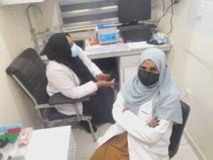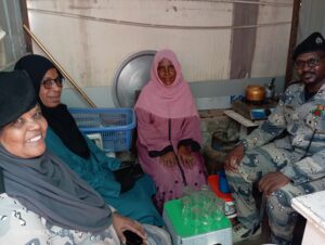 كل سطر من هذا التقرير هو نتاج جولة استمرت ساعتان داخل مستوصف العقيد عثمان صالح رفقة الادارة حيث طفنا على جميع الاقسام حتى البوفيه الذي تقوم بالخدمة فيه (حاجة حواء) وهي امرأة خدومة بشوشة تعتبر الام الثانية لمنسوبي المستوصف يبادلونها احتراما باحترام وهي مشهورة بتقواها وورعها لا تفارق مسبحتها الا عند تقديم الخدمة ، حرص الطاقم الإداري على الجلوس معها داخل البوفيه والحديث عنها في عاطفية تنبئ باحترام كبير .
