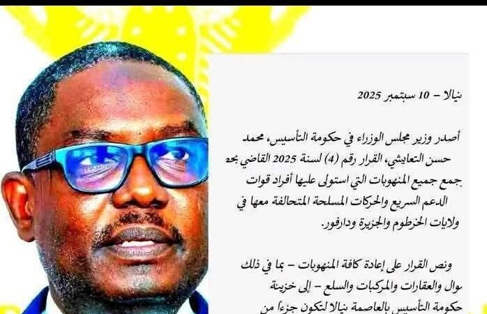 واصدرت المليشيا قرارا بضم تلك المنهوبات إلى ميزانيتها العامة ما يجعل كل مشارك في الحكومة المذكورة شريك في جريمة النهب التي طالت معظم مدن السودان