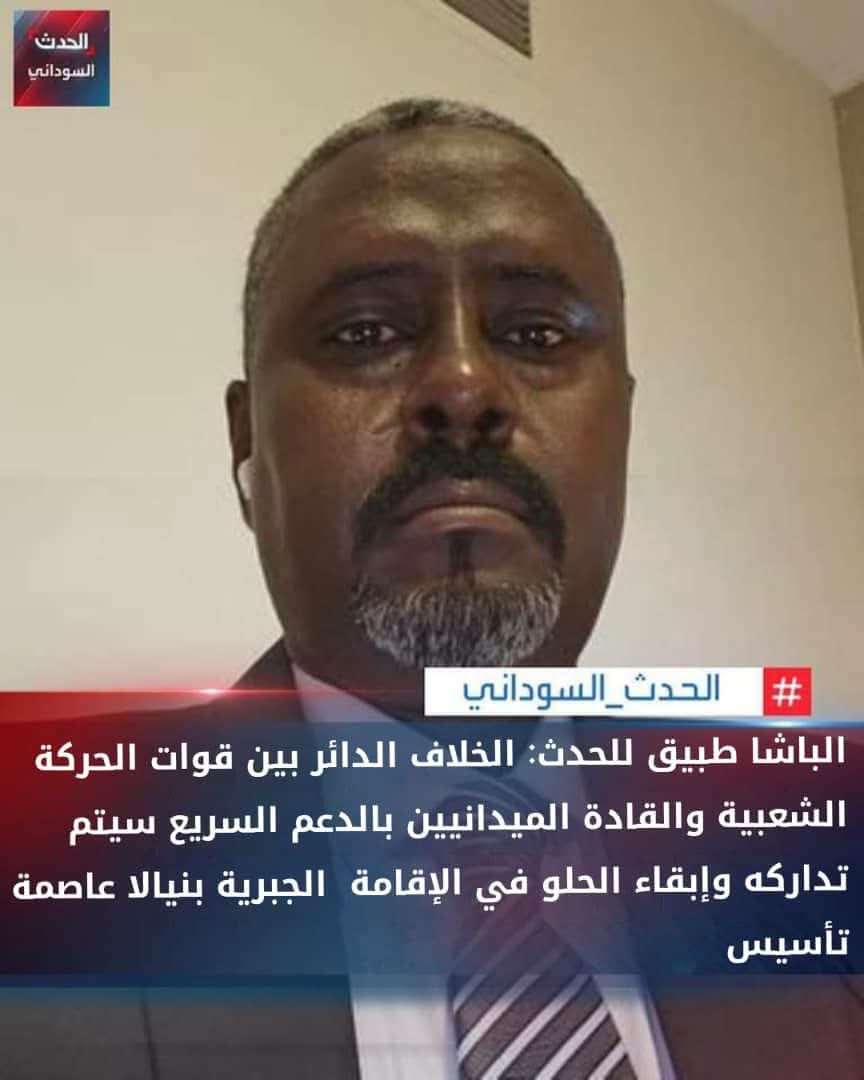 الباشا طبيق: سيتم تدارك الخلاف بوضع الحلو في الإقامة الجبرية بنيالا..
