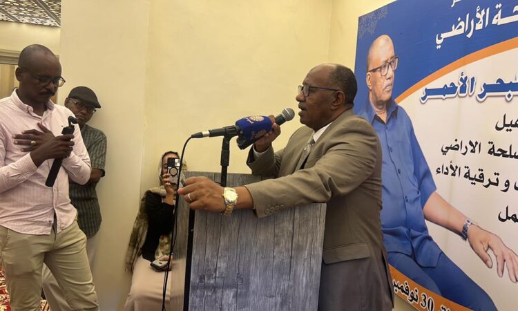 من جهته قال مستشار عبدربه محمد الصادق مدير عام مصلحة الأراضي بولاية البحر الأحمر ندشن تأهيل وصيانة مصلحة الأراضي واعتبره العمود الفقري للاستثمار بالولاية وأوضح أنه شهد عملية تأهيل شاملة علي أسس حديثة وتابع تم اعتماد شكل الصالات المفتوحة وأوضح أن ذلك من أجل الشفافية في العمل وأشار إلي أنه تم تأسيس ارشيف باعتباره ذاكرة لحفظ حقوق الناس.