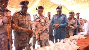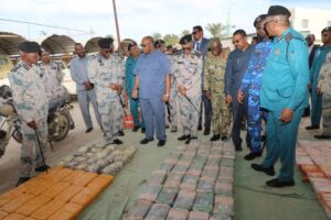 وقف والي ولاية البحر الأحمر، مصطفى محمد نور، ولجنة أمن الولاية، بحضور مدير عام قوات الجمارك، الفريق شرطة صلاح أحمد إبراهيم، والسيد اللواء شرطة عماد محمد نور، مساعد المدير العام للعمليات الجمركية، والسيد اللواء شرطة (حقوقى) أمير زين العابدين، مساعد المدير العام لمكافحة التهريب، والسادة الضباط، وقفوا على ضبطية مخدرات كبرى تُعد إنجازًا أمنيًا ونوعيًا، لقوات مكافحة التهريب ولاية البحر الأحمر وضبط كمية كبيرة من المخدرات تُقدَّر بما يقارب نصف طن، فى واحدة من أكبر الضبطيات التي تشهدها الولاية خلال الفترة الأخيرة، وقد جاءت العملية نتيجة لعمل استخباري دقيق ومتابعة لصيقة من منسوبي مكافحة التهريب