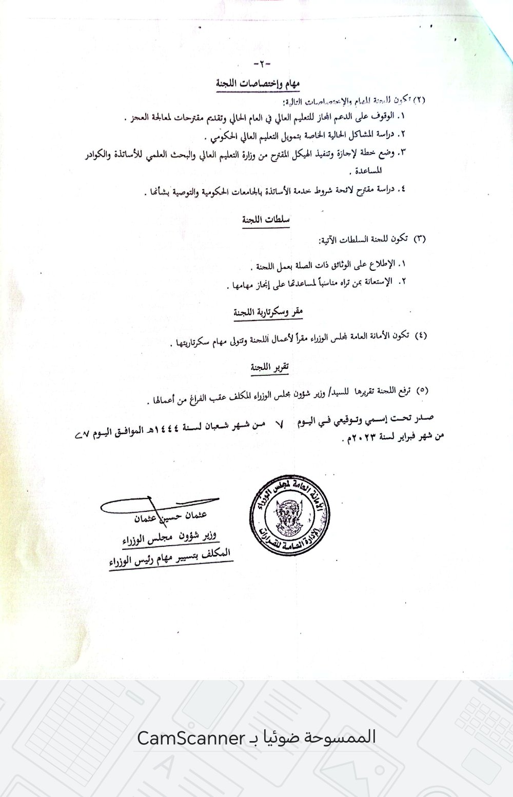 – تم تسليمه تقرير اللجنة كاملاً بمرفقاته