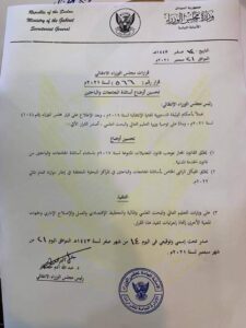 واستند القرار إلى أحكام الوثيقة الدستورية للفترة الانتقالية لسنة 2019م.