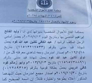 مميزاعلاناعلان بالنشر بامر محكمة الفتح للأحوال الشخصيةشهرين ago31محكمة الفتح للأحوال الشخصية النمرة : ١٤١/ أشهادات / ٢٠٢٥م رسوم الإشهاد بالايصال ۱٥۸۷۹٥ بتاريخ /٢٠٢٥/٧/١٣م بمحكمة الفتح للأحوال الشخصية...
