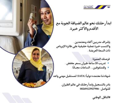 اعلانمميزسودانير تقدم عرضا باذخا لمحبي علوم الطيران4 أسابيع ago8 نوفمبر، 202550 هل تحلم - تحلمين بأن تكون جزءاً من عالم الضيافة الجوية؟ الفرصة الآن بين يديك مع مركز تدريب الخطوط...