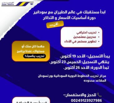 الإقتصاديةسودانير تقدم خطة تدريبية طموحة في مجال صناعة الطيرانشهر واحد ago37بدأ الناقل الوطني السوداني ....شركة الخطوط الجوية السودانية (سودانير) خطة طموحة من أجل النهوض بصناعة الطيران بالسودان وفي السياق قدمت...