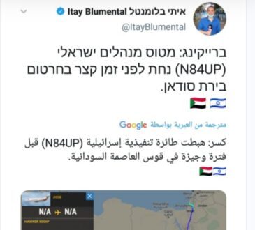 الاخبارهبوط طائرة اسرائيلية بمطار الخرطوم6 سنوات ago26 مايو، 20202.8kالمجرة برس :نقلا عن السوداني كشفت وسائل إعلام إسرائيلية هبوط طائرة إسرائيلية بمطار الخرطوم. وغرد مراسل هيئة البث الاسرائيلي شمعون...