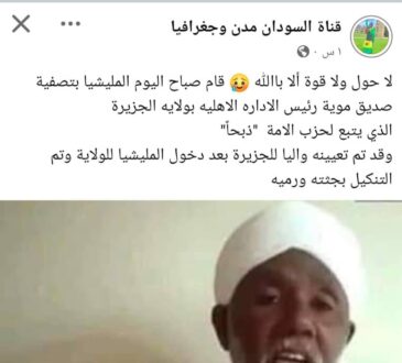 الاخبارالمليشيا تصفي والي الجزيرة (رئيس الإدارة الأهلية) المعين من طرفهاسنة واحدة ago348 يتم تداول خبر مؤلم آت من مصادر متعددة بولاية الجزيرة أن قوات مليشيا الجنجويد وبعد أن فشلت...