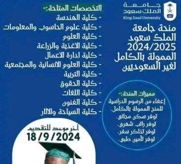 الاخبارعاجل ….منحة جامعة الملك سعودسنة واحدة ago10 سبتمبر، 2024418 الدراسة في المملكة العربية السعودية - منحة جامعة الملك سعود بشارة سارة تواصلنا مع جامعة الملك...