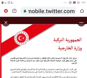 الاخبارالخارجية التركية تشيد برفع السودان من قائمة الإرهاب5 سنوات ago227 ارسلت وزارة الخارجية التركية عبر سفارتها بالسودان خطابا يثمن خطوة رفع اسم السودان من قائمة الدول الراعية للإرهاب، وفي...
